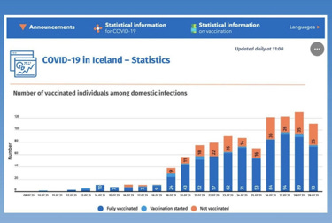 Fig 5. The fully vaccinated make up a large proportion of the number of covid cases in Iceland. Suggesting that being fully vaccinated does not protect a person from becoming infected.