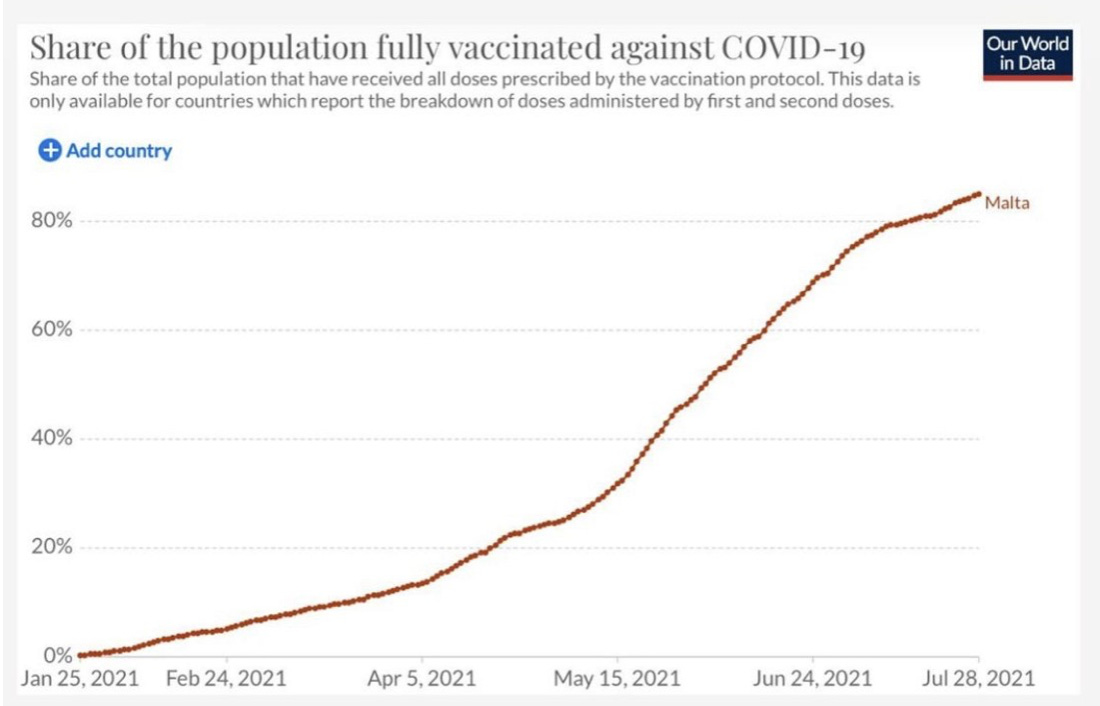 Fig 3. Malta also had a very successful Covid-19 vaccination campaign and got 80% of its population vaccinated.