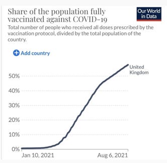 Fig 6. The UK has 60-70% of its population vaccinated.