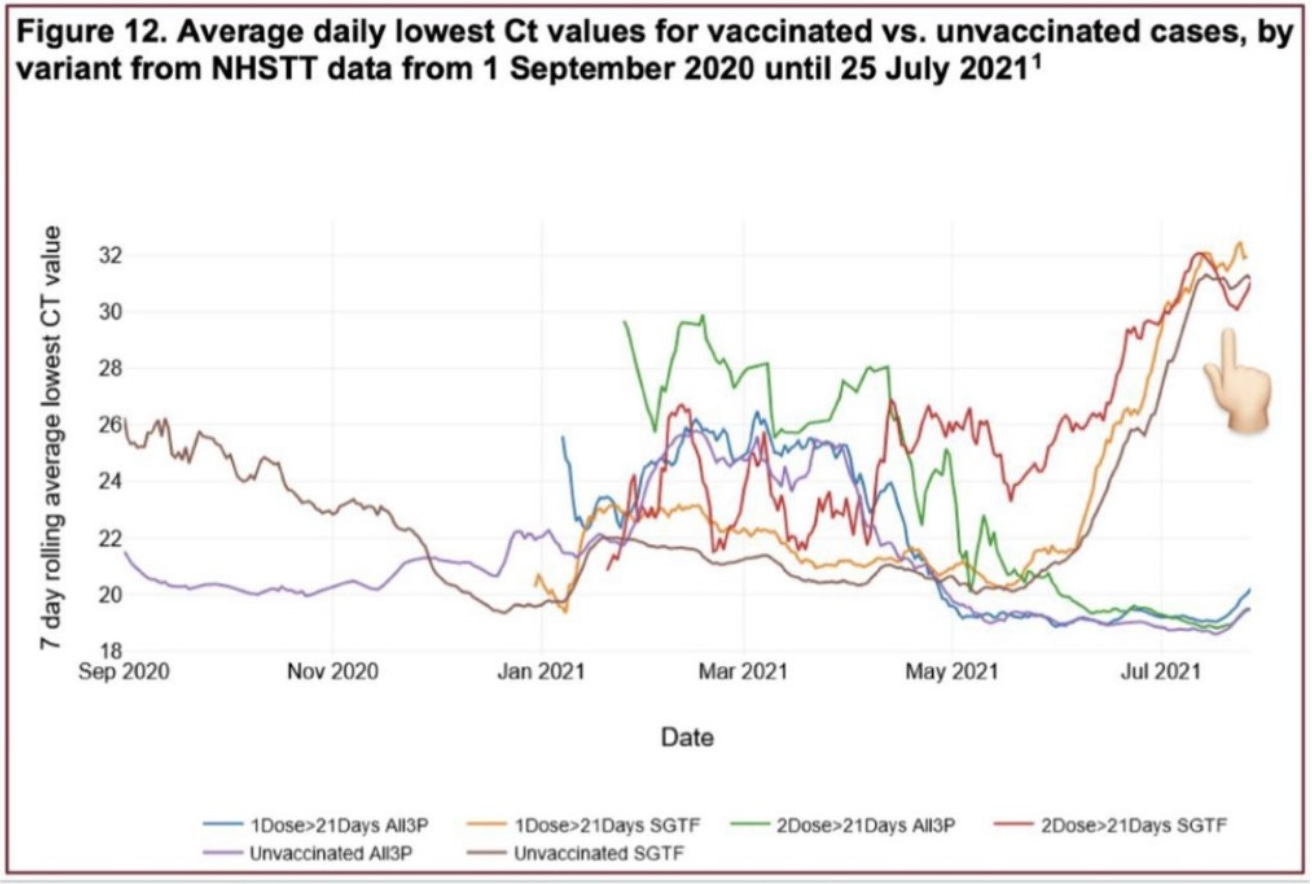 Fig 8. Public Health England reports that the fully vaccinated actually have the same viral loads as the unvaccinated.