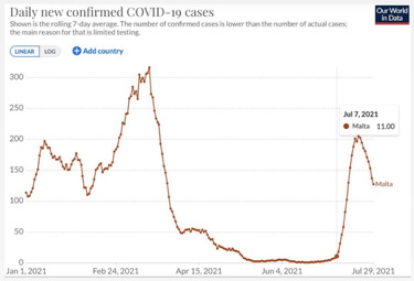 Fig 4. Nevertheless, Malta is currently facing a massive surge in Covid-19 cases.
