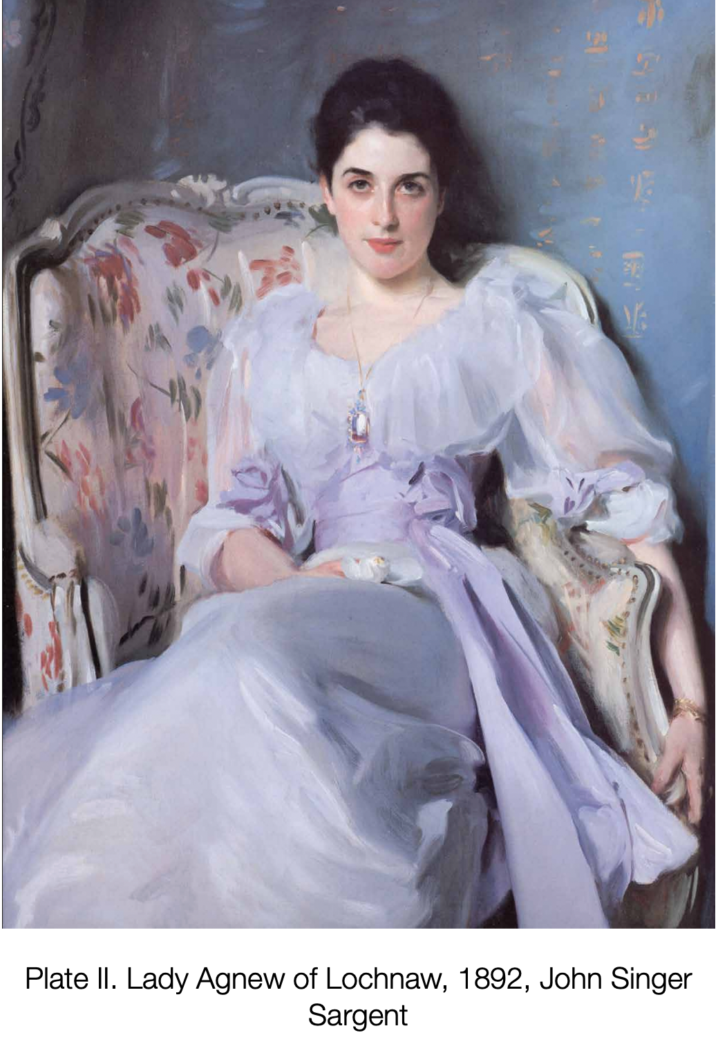 When you look at Lady Agnew’s portrait, John Singer Sargent seems to have painted a gravity into her beautiful eyes. She is reposed in a simple lilac dress in a chair, but wherever you look in the painting, the eyes are ineluctably pulled back to her dark eyes and her rosy mouth. These features seem so simple and yet magnetic. Is this her natural beauty which has been captured or is it something in Sargent’s painting technique. I argue that it is both: Sargent has captured the magnetism of her beauty. This is no simple feat and the best photographers today struggle to achieve this with their instantaneous rendering.
