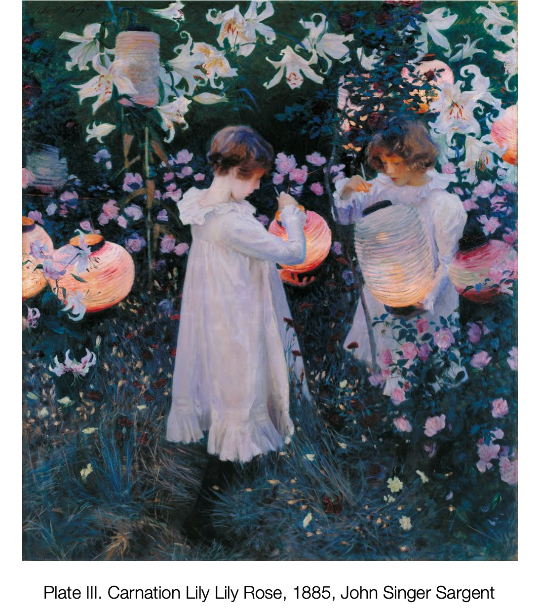 The magical element of John Singer Sargent’s painting is evident in all of his work, but there is one in particular, “Carnation Lily Lily Rose” painted in 1885. This painting depicts two little girls holding lanterns, standing in a meadow at twilight. They are surrounded by luminescent white lilies, a clear symbol of their purity and innocence. The daisies on the ground glow with the fading light of the sun reflected on their faces and Sargent’s expert brushwork transforms the daisies in little white and gold wisps which we cannot tell are flowers, fireflies or fairies.