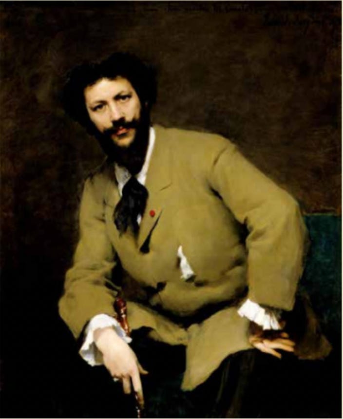 In 1874, he entered the atelier of Carolus Durand, a leading portrait artist in Paris. Durand encouraged his students to paint immediately rather than make too many preliminary drawings to capture the energy and spirit of the moment in the final work. Sargent quickly became his protegé.